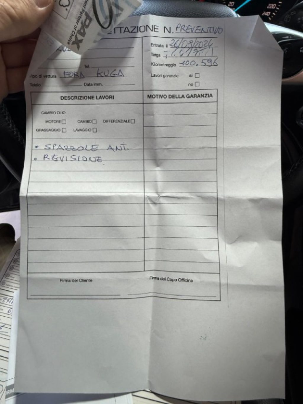 - Cronologia tagliandi